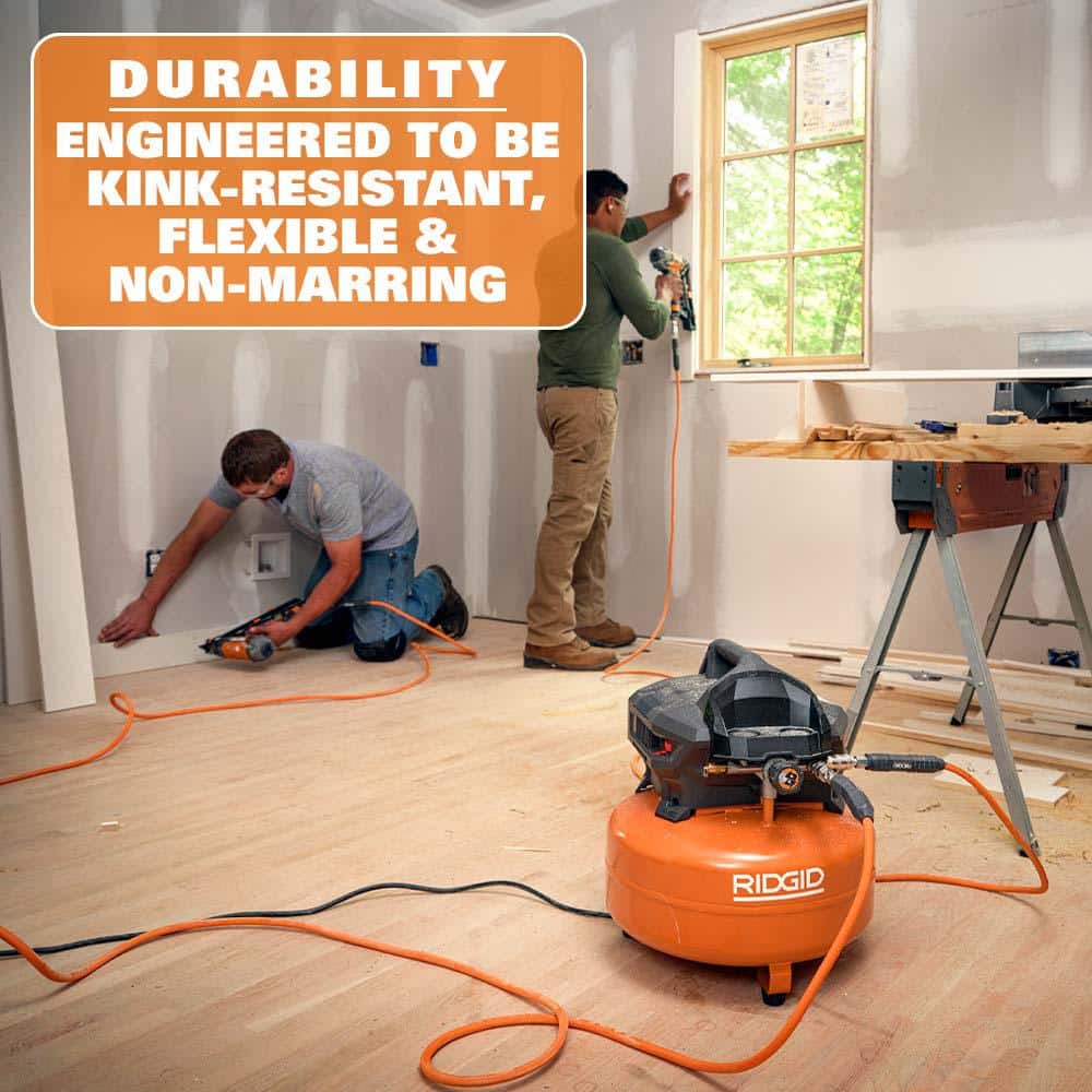Le tuyau d'air plat RIDGID de 6,35 mm x 15,2 m (1/4 po x 50 pi) est conçu pour une durabilité, une flexibilité et des performances maximales. Conçu pour supporter jusqu'à 300 psi (300 psi), ce tuyau d'air robuste présente une conception résistante aux pliures et non marquante, ainsi qu'un profil plat unique qui conserve sa forme pour une utilisation et un rangement aisés. Sa construction légère en tissu est non seulement plus facile à manipuler que les tuyaux en caoutchouc traditionnels, mais s'enroule et se déroule également sans effort pour optimiser la productivité sur le chantier. Les limiteurs de courbure robustes font de ce point faible habituel l'un des atouts de ce tuyau. Il fléchit même par temps froid, garantissant une performance en toute saison, vous faisant gagner du temps et de l'argent. 100 % réparable sur site, ce qui vous permet d'économiser du temps et de l'argent en cas de déchirure accidentelle. Bénéficiant d'une garantie à vie limitée, le R5025LF est le tuyau fiable et de qualité professionnelle dont vous avez besoin pour assurer le bon fonctionnement de vos outils. Attaquez-vous aux travaux difficiles en toute confiance grâce au tuyau d'air plat RIDGID.