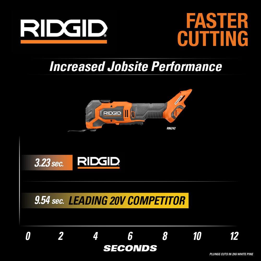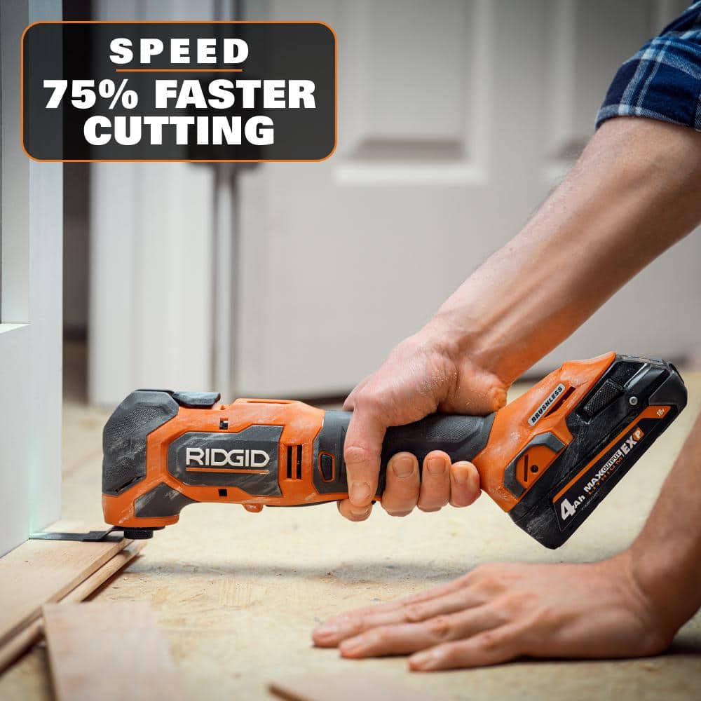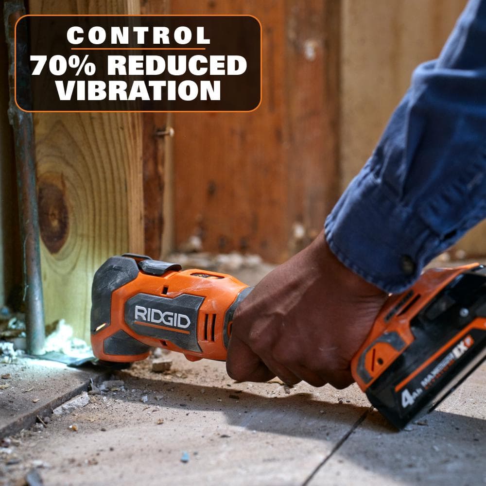 L'outil multifonction oscillant sans balais RIDGID 18 V offre la puissance nécessaire pour réaliser une variété d'applications de chantier exigeantes. Coupez en toute confiance le bois dur et le bois clouté grâce à la technologie de moteur sans balais RIDGID, offrant des performances maximales et une autonomie prolongée. Obtenez une coupe jusqu'à 75 % plus rapide grâce à un angle d'oscillation de 4° et à des vitesses allant de 0 à 20 000 tours/min. Cet outil multifonction offre une réduction de 70 % des vibrations pour un contrôle, une précision et un confort accrus lors des travaux exigeants. Le sélecteur à trois vitesses et la gâchette à vitesse variable vous permettent d'optimiser le contrôle pour adapter la vitesse à chaque application. Changez d'accessoires en toute simplicité grâce au changement d'accessoires sans outil, pour une transition fluide et sans effort. Effectuez des travaux précis et manœuvrez dans les espaces restreints grâce à la tête 10 % plus compacte de cet outil multifonction oscillant. Comme toujours, cet outil multifonction oscillant sans balais RIDGID 18 V est 100 % compatible avec toutes les batteries RIDGID 18 V. Cet outil est couvert par le meilleur contrat de service à vie du secteur. Inscrivez-vous simplement dans les 90 jours suivant l'achat pour bénéficier des pièces et du service GRATUITS, à vie. Le R86242B comprend un outil multifonction oscillant sans balais 18 V, un patin de ponçage, du papier abrasif, une lame segmentée et une lame plongeante. Batterie et chargeur vendus séparément.